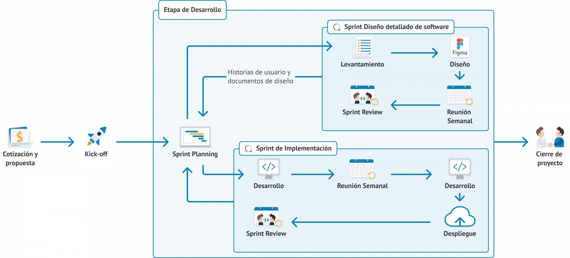 Una vez finalizado el proyecto, existe la posibilidad de continuar con el desarrollo o mantenimiento continuo de su software o proyecto.